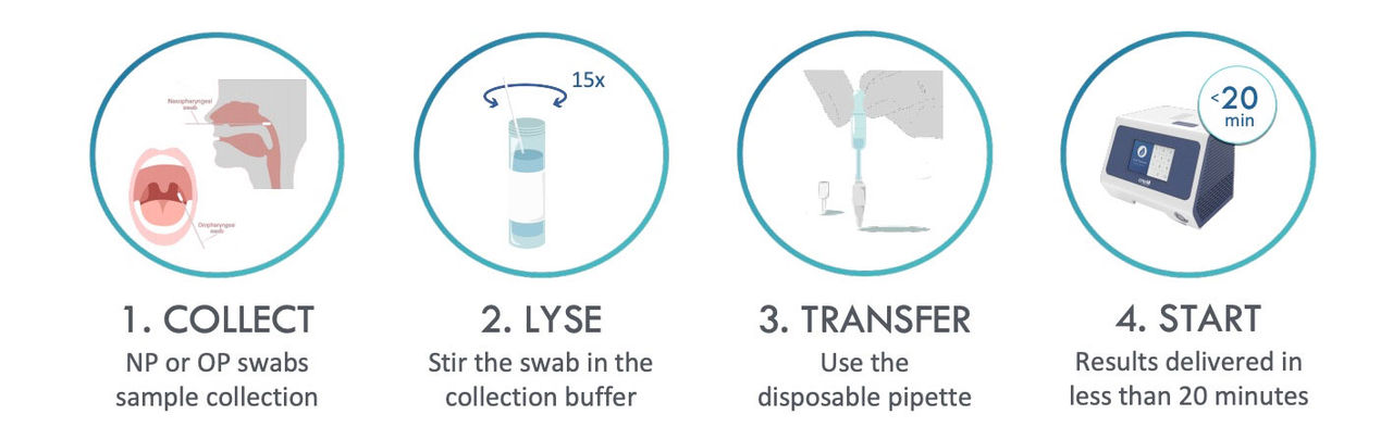Sample preparation is completed in 1 minute just introducing the swab into the collection buffer. In a few seconds the sample is ready to be transferred to the PCR tube.